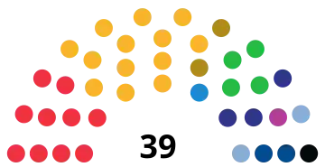 All 39 seats in the Sámi Parliament 20 seats needed for a majority | |||||||||||||||||||||||||||||||||||||||||||||||||||||||||||||||||||||||||||||||||