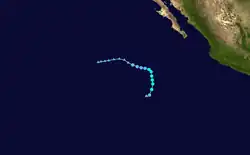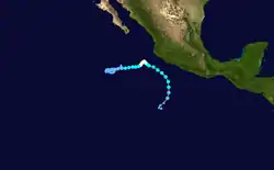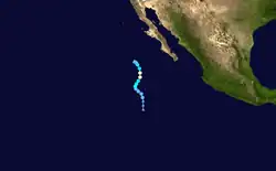 The season's first tropical storm formed on May 15,[8] coinciding with the official start of the Pacific hurricane season.[9] On average, a tropical cyclone develops in May in the eastern Pacific every other year.[10] The formation of Barbara in late May marked only the fifth time since 1949 that two tropical storms formed during the month, with the other seasons being 1956, 1984, 2007, 2012, and 2021.[11][12][13]