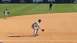 LB Dantzler playing third base against Arkansas at Baum Stadium