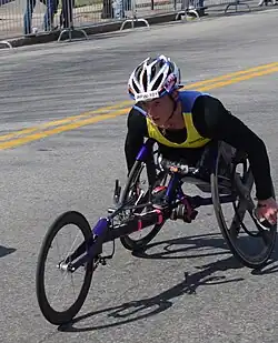 ![]() Tatyana McFadden near halfway point in Wellesley |