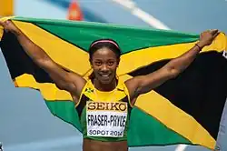 ![]() Shelly-Ann Fraser-Pryce after winning the final. | ||||||||||
