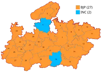 The 2014 Indian general election in Madhya Pradesh were held for 29 seats in the state. The major two contenders in the state were Bharatiya Janta Party (BJP) and the Indian National Congress (INC). The voting process was held in three phases on 10, 17 and 24 April 2014.[1]