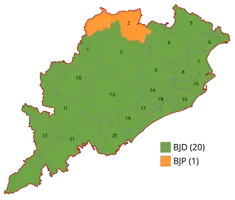 The 2014 Indian general election polls in Odisha for 21 Lok Sabha seats were held in two phases on 10 and 17 April 2014.[1]
