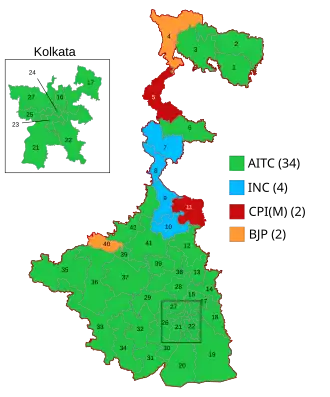 Seatwise Result Map of the 2014 general election in West Bengal |