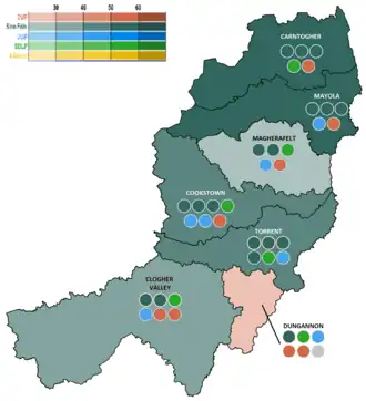 Mid Ulster 2014 Council Election Results by DEA (Shaded by plurality of FPVs) |