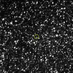 2014 PN70 is one of the objects that New Horizons observed from greater distances, as part of its extended Kuiper belt mission. The spacecraft passed 2014 PN70 in March 2019, at a distance of approximately 0.1 AU (15 million km; 9.3 million mi). This made 2014 PN70 the third closest KBO observed by New Horizons, after Arrokoth and 2014 OS393.[17] New Horizons made its first observations of 2014 PN70 on 5 January 2019, from a distance of 92.7 million km.[18]