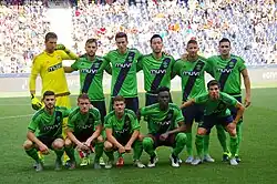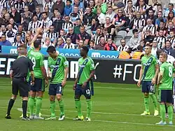 Southampton began their pre-season preparations in Austria with a friendly against German side RB Leipzig on 8 July 2015, which they lost 5–4.[41] New signings Juanmi and Cédric Soares scored their first goals for the club, while Jay Rodriguez returned from a long-term injury to strike twice in the game.[41] Three days later, the club competed in the Audi Quattro Cup semi-final against Spanish club Valencia, losing 1–0 thanks to a goal scored by Pablo Piatti.[42] Both Sadio Mané and José Fonte hit the crossbar during the game, but Valencia advanced to the final.[42] In the third-place playoff match against hosts Red Bull Salzburg, the Saints lost 2–0, thus finishing fourth in the tournament.[43]