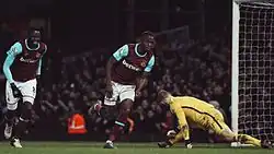 ![]() Mark Noble celebrates scoring West Ham's third against West Bromwich Albion, April 2016 | ||||