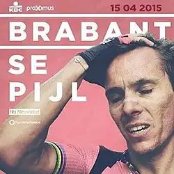 The 2015 Brabantse Pijl was the 55th edition of the Brabantse Pijl road cycling race in Belgium. Held on 15 April 2015, it started in Leuven and ended 205.4 kilometres (127.6 miles) later in Overijse. It was a 1.HC-ranked race that was part of the 2015 UCI Europe Tour.[1] The main difficulty in the race was caused by 26 climbs, as well as twisting roads in the final part of the route.[2]