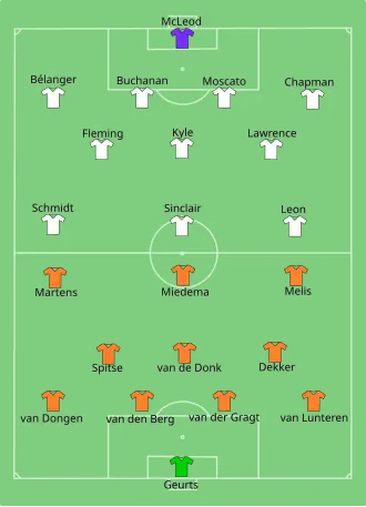 - ^ a b "Tactical Line-up – Netherlands-Canada" (PDF). FIFA.com. Fédération Internationale de Football Association. 15 June 2015. Archived from the original (PDF) on 18 June 2015. Retrieved 15 June 2015.