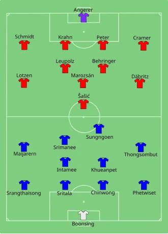 - ^ a b "Tactical Line-up – Thailand-Germany" (PDF). FIFA.com. Fédération Internationale de Football Association. 15 June 2015. Archived from the original (PDF) on 18 June 2015. Retrieved 15 June 2015.