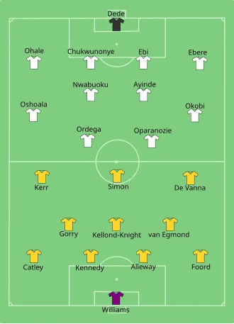 - ^ a b "Tactical Line-up – Australia-Nigeria" (PDF). FIFA.com. Fédération Internationale de Football Association. June 12, 2015. Archived from the original (PDF) on June 15, 2015. Retrieved June 12, 2015.