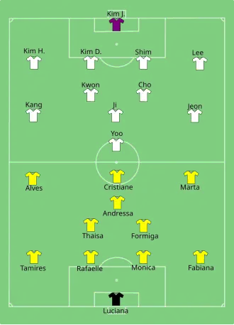 - ^ a b "Tactical Line-up – Brazil-South Korea" (PDF). FIFA. 9 June 2015. Archived from the original (PDF) on 10 June 2015. Retrieved 9 June 2015.