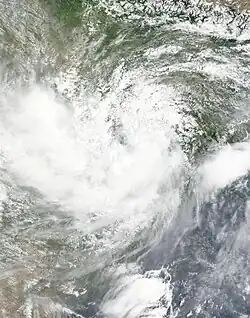 On July 26 a depression formed inland over the Ganges delta. Early on July 30, the system was upgraded to a cyclonic storm by the IMD and named as Komen while making a U-turn. On August 2, Komen was no longer a tropical cyclone.[31]