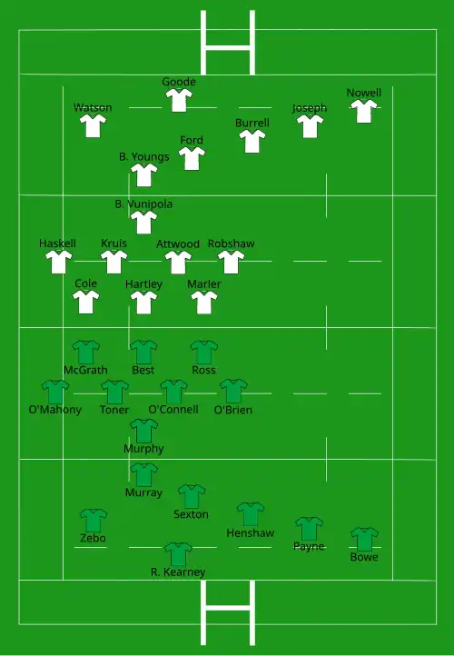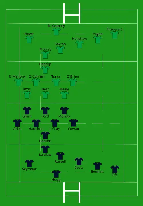 | Try: Russell 29' c Con: Laidlaw (1/1) 30' Pen: Laidlaw (1/1) 17' | Report | Try: O'Connell 4' c O'Brien (2) 24' c, 71' c Payne 49' c Con: Sexton (3/3) 5', 25', 50' Madigan (1/1) 72' Pen: Sexton (4/6) 9', 33', 44', 61' |