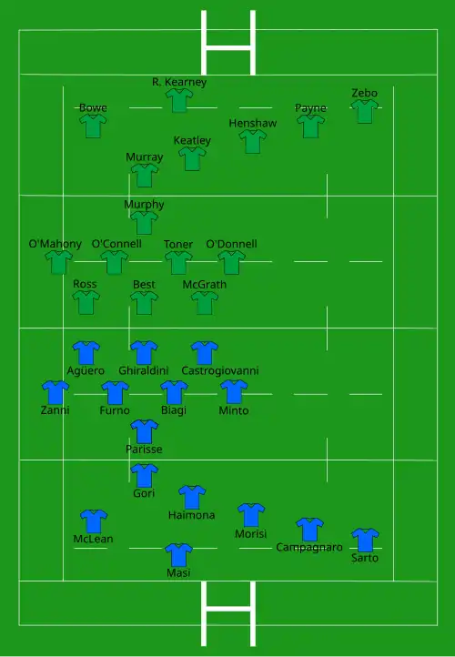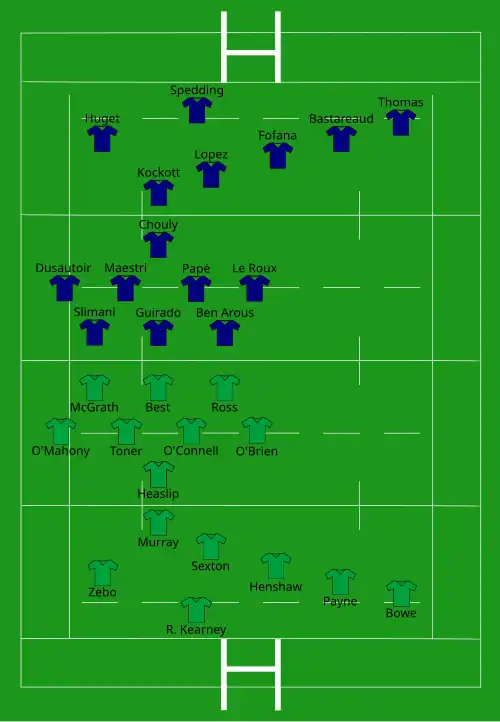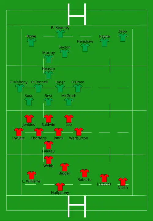 - Seán O'Brien was set to return to the Irish line-up after injury, but was replaced by Tommy O'Donnell in the starting XV following injury in the pre-game warm-up.[11]