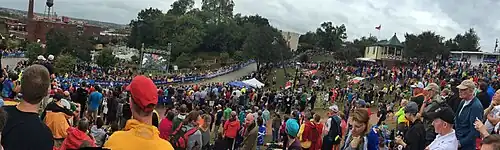 In a sprint finish of a select group of nine riders, Great Britain's Lizzie Armitstead added the rainbow jersey to her UCI Women's Road World Cup overall victory, out-sprinting Dutch rider Anna van der Breggen by just over a wheel's length.[1][3][4] The podium was completed by home rider Megan Guarnier, the first American to podium in the event since 1994.[5][6]