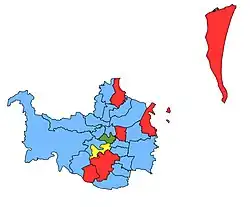 The main opposition party, the Labor Party was reduced to 5 wards, its lowest number in over a decade.