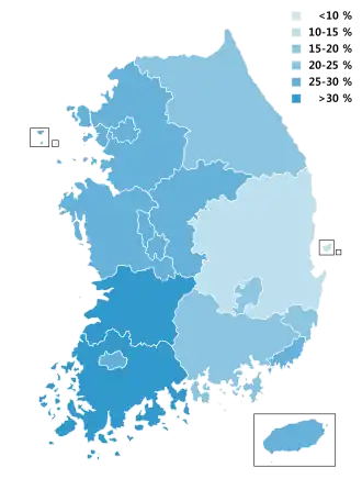 | Gyeonggi | 32.3 | 26.8 | 27.0 | 7.8 | 6.1 |