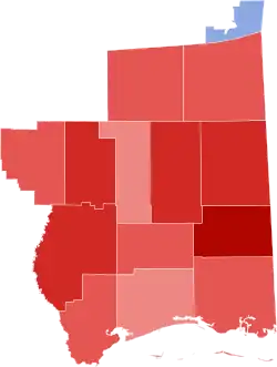 Results by county Palazzo: 50-60% 60-70% 70-80% 80-90% Gladney: 50-60% |