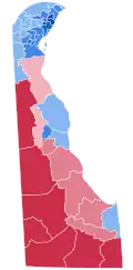 Clinton carried the state with 53.1% of the vote to Trump's 41.7%, a victory margin of 11.38%[2] Although Democrats continued their streak of winning Delaware, a state that has not gone to the Republicans in a presidential election since 1988, it swung 7.19% to the right relative to 2012, and Trump managed to flip Kent County. This was the first time since 1968 that Delaware did not vote for the same candidate as neighboring Pennsylvania. As of 2024, this is the last time the Republican nominee won Kent county with Trump failing to win the county again in both of his next presidential runs in 2020 and 2024.