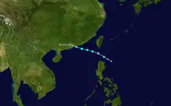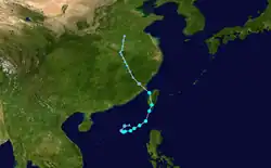 Sustained winds of 51.3 knots (95.0 km/h; 59.0 mph) and a minimum pressure of 990.3 hPa (29.24 inHg) were recorded in Hong Kong as the eye passed nearby.[37] Across Guangdong Province, 32 homes were destroyed, 122,000 people reported property damage, and 13,000 hectares of crops flooded. Total economic losses in South China were counted to be CN¥600 million (US$88.3 million).[39]
