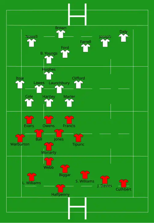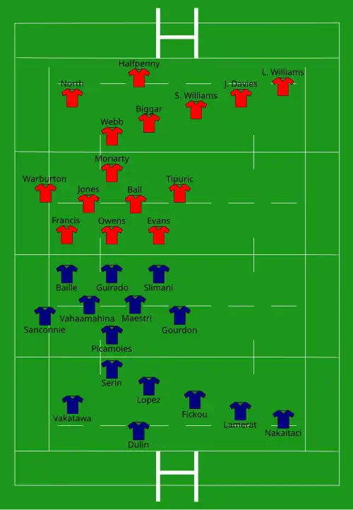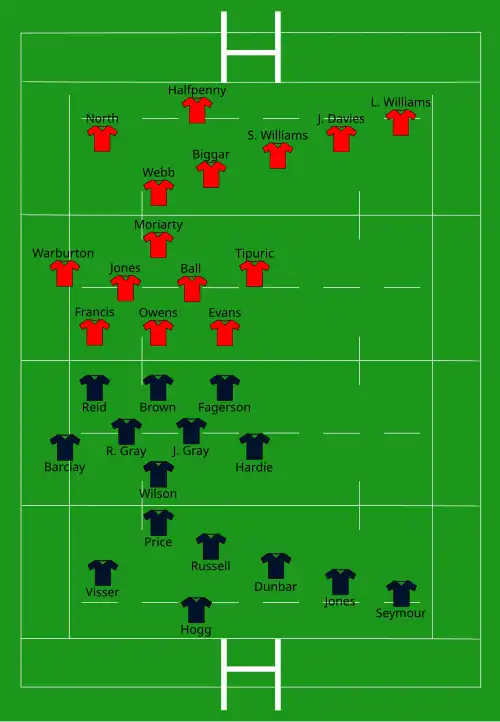 | Try: Seymour 43' c Visser 66' c Con: Russell (2/2) 44', 67' Pen: Russell (5/5) 6', 29', 40', 54', 72' | Report | Try: L. Williams 22' c Con: Halfpenny (1/1) 24' Pen: Halfpenny (2/3) 11', 33' |