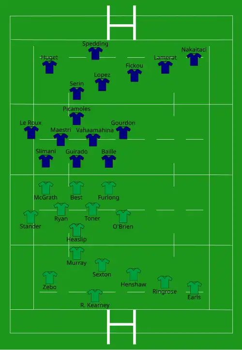- Jamie Heaslip withdrew from the team after suffering an injury during the pre-match warm-up. He never recovered from the injury or played again and retired in February 2018.
