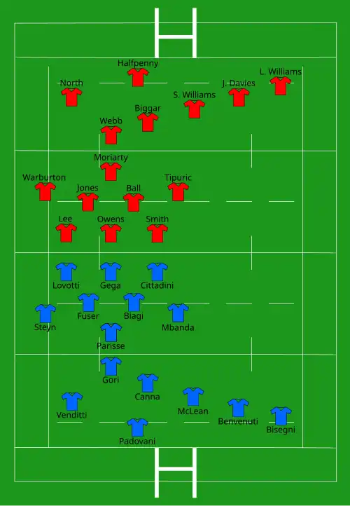 | Try: Gori 28' c Con: Canna (1/1) 29' | Report | Try: J. Davies 60' c L. Williams 66' c North 77' c Con: Halfpenny (3/3) 61', 68', 78' Pen: Halfpenny (4/5) 35', 45', 52', 55' |