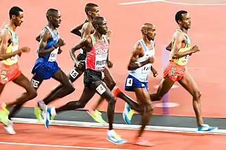 The men's 5000 metres at the 2017 World Championships in Athletics was held at the London Olympic Stadium on 9−12 August.[1] This race was announced as the last track race of Mo Farah's career as he intends to focus on marathon running and road racing. Farah had been in every final since 2007, winning three straight since 2011.