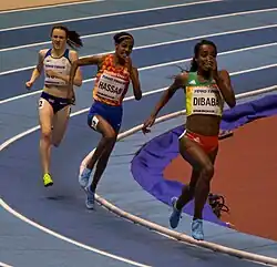 The race took off at a leisurely pace, with Muir taking the pack through a 1:15.31 first lap, marked by 5000 world champion Hellen Obiri. Hassan and Dibaba chose to lead from behind, taking the back of the pack. The next 400 was even slower, 1:20.45. With that, Konstanze Klosterhalfen tired of the slow pace and took the lead. With the injection of pace, Dibaba decided to move forward on the next straightaway to mid pack, then with a big acceleration on the next straightaway. As Dibaba passed, her teammate Fantu Worku popped out of the pack to tag along, both reaching a gap at the front behind Klosterhalfen. The third lap split was 1:12.23, but with the exchange in the lead it was considerably faster for Dibaba in particular. Obiri and Bahta wanted to tag along with Dibaba, pushing forward to her shoulder, while at the back Hassan moved up a few places as the field strung out. The next 400 was accomplished in 1:09.67. Just before 2000 meters, passed in 6:07.62 (a 1:08.96 split) Dibaba accelerated into the lead. That triggered Hassan to move forward. Klosterhalfen, Muir, Bahta and Worku attempted to hold on, but the only one to stay with Dibaba was Obiri at first. As Hassan accelerated past, Klosterhalfen and Muir followed her to bridge the gap. Dibaba ran the next 400 in 1:07.56. The pace was too much for Obiri as she broke, going backward through the field as Hassan and Muir chased a new gap by Dibaba. The gap widened as Dibaba laid down a 1:02.43 split. Through the final lap, Hassan gained slightly on Dibaba, but could't make enough progress. Dibaba coasted across the finish line with the win. Behind her Hassan let off the gas, while Muir launched a final kick, almost catching Hassan at the line.[3]