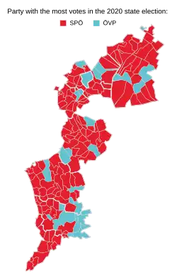 The SPÖ's unexpectedly strong result came after a string of election losses since 2017, including its worst-ever result in the 2019 federal election result three months earlier.[2] Commentators attributed this to the conservative positions on immigration and national security taken by Governor Hans Peter Doskozil.[3] Burgenland is a traditional stronghold of the SPÖ, who have governed the state continuously since 1964.