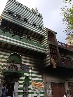 In Ashok Nagar, a mosque was vandalized and a Hanuman flag was placed on one of the minarets of the mosque. It was also reported that prayer mats of the mosque were burnt and torn pages from the Quran were strewn outside the mosque.[93] A mob shouting the slogans Jai Śrī Rām (transl. "Hail Lord Rama") and Hindūō̃ kā Hindustān (transl. "India for Hindus") marched around the mosque before setting it on fire and looting adjacent shops and houses. According to local residents, the attackers did not belong to the area.[12] After the first wave of violence by rioters, the police evacuated Muslim residents and took them to the police station. While the residents were away, a second mosque in Ashok Nagar and a third in Brijpuri were also torched along with a three-storey house and eight shops in the vicinity; the rioters could not be identified.[94][95] Another mosque was vandalised in Gokulpuri.[96]
