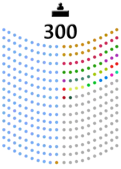 Turnout in the second round was estimated to be even lower than the first, with only 2,884,757 voters participating out of a registered 28,217,880, for a turnout of approximately 10.22%. A total of 2,451,704 votes (84.09%) were valid.[3] The National Electoral Authority appeared to contradict prior seat count reports from the first round for the Nation's Future Party according to one source, saying they had earned 50 seats rather than 59.[20] The Nation's Future Party won 20 constituency seats in the second round, with 5 seats going to independent candidates and one to the Republican People's Party.[21][22]
