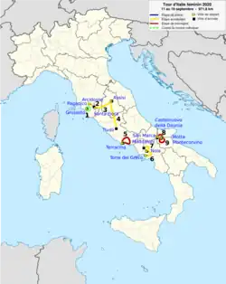 11 September 2020 — Grosseto to Grosseto, 16.8 km (10.4 mi), team time trial (TTT)[6]