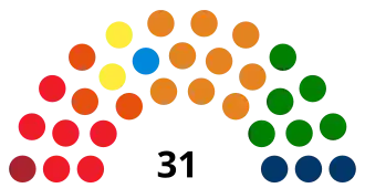 The Regional Council of Liguria is composed of 30 members, plus the president elect. The president elect is the candidate winning a plurality of votes at the election. Within the council, 24 seats are elected in provincial constituencies by proportional representation. The remaining 6 councillors are assigned as a majority bonus if the winning candidate has less than 18 seats, otherwise they are distributed among the losing coalitions.[4]
