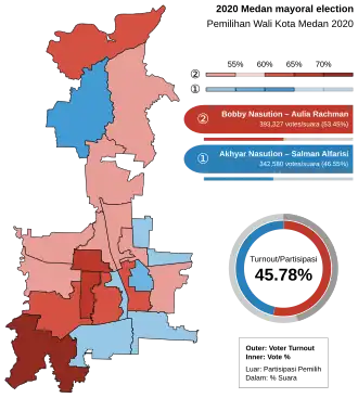 - ^ "HITUNG SUARA PEMILIHAN WALIKOTA DAN WAKIL WALIKOTA KOTA MEDAN" (in Indonesian). General Elections Commission. Retrieved 17 December 2020.