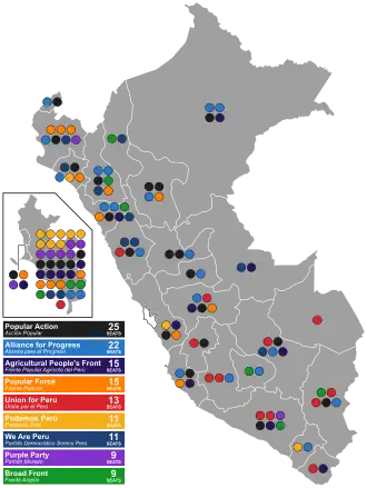 - ^ a b Part of the Alliance for the Progress of Peru coalition in the 2016 general election