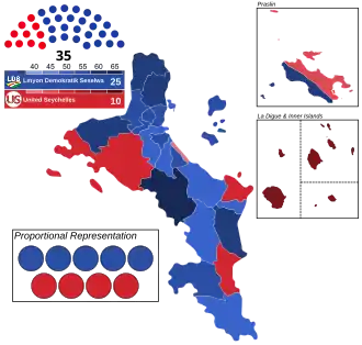 | Linyon Demokratik Seselwa | 35,202 | 54.84 | 20 | 5 | 25 | +6 | ||