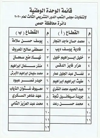 - ^ a b c d e f g h i j Karam Shaar; Samy Akil (28 January 2021). "Inside Syria's Clapping Chamber: Dynamics of the 2020 Parliamentary Elections". Middle East Institute. Retrieved 29 April 2021.