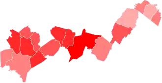 County results Mooney: 50–60% 60–70% 70–80% Swing More Democratic 5-10% <5% More Republican 25-30% 20-25% 15-20% 10-15% 5-10% <5% | |||||||||||||||||
