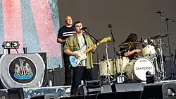 Members of the UK indie subculture combined thrifted dress clothing[357] from the mid-2000s to early 2010s with selected vintage clothing and new garments made to retro 1960s patterns[358] by companies such as Madcap England.[359] Artists including Sam Fender, Wet Leg, Lathums, Years & Years, and Wolf Alice popularized velvet or paisley tuxedo jackets in dark blue, green or burgundy, off the peg dark wash slim fit jeans, striped polo shirts with cardigan sweater styling,[359] white T-shirts, black leather jackets,[360] bucket hats, plaid or black miniskirts, dresses with red or black polka dots, striped throwback football shirts popularized by Sam Fender,[361] blouses especially in orange or brown, Argyle golfing sweaters,[360] black or grey Prince of Wales check sport-coats, checked western shirts, ripped jeans, red Doc Martens, suede Beatle boots with pointed toes, bowling shoes, brothel creepers, and parkas.[362][363][364]