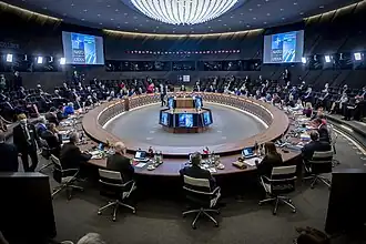 The 2021 Brussels summit of the North Atlantic Treaty Organization (NATO) was the formal meeting of the heads of state and heads of government of the North Atlantic Treaty Organization, held in Brussels, Belgium, on 14 June 2021.[1]