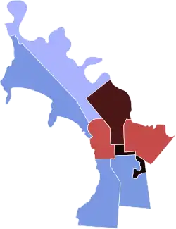 | Ward 6 | 58.07% | 1,061 | 33.11% | 605 | 7.44% | 136 | 0.27% | 5 | 0.33% | 6 | 0.55% | 10 | 0.16% | 3 | 0.05% | 1 | 100.00% | 1,827 |