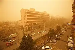 The sandstorm was the biggest to hit China in a decade, causing pollution levels in some districts to rise to 160 times the recommended limit.[6][4] It affected 12 provinces in China, including the Chinese capital Beijing which the storm hit on March 15.[4]