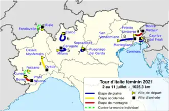 - ^ "Stages – Giro d'Italia Donne". 2021 Giro Rosa. PMG Sport. Archived from the original on 9 July 2021. Retrieved 30 June 2021.