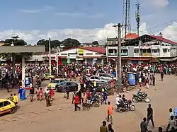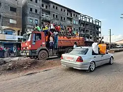 In 2019, the government agreed to the extension of a credit facility with the International Monetary Fund on the basis they would run a fiscal surplus, increase tax collection as a portion of GDP, reduce subsidies for petrol and electricity, increase investment in public infrastructure, reduce borrowing from the central bank and promote development of the private sector.[23] Following recommendations at the United Nation's Third International Conference on Financing for Development in Addis Ababa in October 2019, Condé announced that 15% of mining revenue would be dedicated to the National Agency for the Financing of Local Communities to boost local government, as well as introducing measures to raise tax collection from 13% to 15% of GDP.[24] This programme failed to bring immediate financial benefits for most citizens, with 60% of the labour force still working in the agricultural sector,[25] and the communities around the mines being inadequately compensated for land, water and health losses connected with the mineral extraction.[26][27][28]
