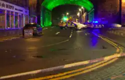About 20 minutes following the attack at University Hospital Crosshouse, a second incident occurred in the town centre by the railway viaduct. At 8:05 pm, a 24-year-old woman was stabbed and seriously wounded.[5] She was taken to hospital where she later died from her wounds.[5] Portland Street, where the viaduct is situated, was cornered off by police attending the scene, with all traffic being diverted away from the area.[9] The public were strongly urged to stay away from the area.[10][11]
