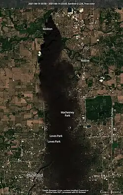 On June 14, 2021, a maintenance accident at the Chemtool Incorporated manufacturing plant in Rockton, Illinois, United States, triggered a chemical fire that lasted four days and injured two emergency workers.[1][2] Portions of the village, located north of Rockford near the Illinois-Wisconsin state line, were subject to a mandatory evacuation as a result of the fire.[3] The fire was not contained until June 16, with the evacuations lasting until June 18.[4][5]
