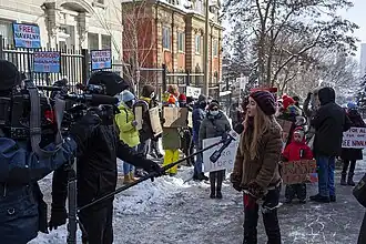 On the first day, protests were held in 122 towns and cities across Russia in what were one of the largest anti-government demonstrations since protests were held against the results of legislative elections in 2011 and Putin's re-election in 2012.[47][48][49][50] Unsanctioned by the authorities, the protests were met with police crackdowns, with thousands detained.[51] As a result, Navalny's team announced a suspension of street protests on 4 February, stating that they would focus on legislative elections that would be held later in the year,[52][53] and later announcing a shift from street protests to courtyard protests to avoid direct confrontation with police.[54][55] In response to Navalny's deterioration of health while in prison, street protests were held again on 21 April for the last time.[56]